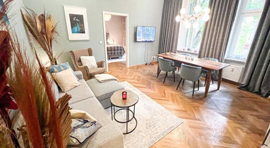 Diese stilvolle Altbauwohnung verbindet klassischen Charme mit modernem Wohnkomfort. Auf etwa 66 Quadratmetern bietet sie zwei großzügige Zimmer mit hohen Decken und wunderschönem Fischgrätparkett, die ein helles und luftiges Wohngefühl schaffen. Die Wohnung ist komplett möbliert und verfügt über eine hochwertige Einbauküche, sodass einem unkomplizierten Einzug nichts im Wege steht. Das Tageslichtbad fügt sich harmonisch in das stilvolle Gesamtbild ein und rundet das Angebot ab. Der gepflegte Altbau besticht durch liebevolle Details und eine charmante Ausstrahlung, die den besonderen Charakter dieser Wohnung unterstreicht. Ideal für alle, die das Besondere suchen und Wert auf ein hochwertiges Wohnambiente legen.