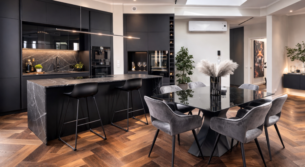 Maximaler Wohnkomfort und durchdachtes Design – in dieser Penthouse-Wohnung wurde jedes Detail mit kreativem Know-how und höchster Sorgfalt gestaltet. Ein besonderes Highlight ist der verglaste Erker, der als gemütlicher Rückzugsort für entspannte Abende auf dem Sofa dient. Zwei großzügige Schlafzimmer, jeweils mit eigenem luxuriösen Bad, schaffen wahre Wohlfühloasen für Ruhe und Erholung.