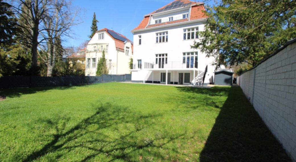 Diese prachtvolle Stadtvilla vereint historischen Charme mit höchstem Wohnkomfort. 1906 erbaut und 2023/24 aufwendig modernisiert, liegt sie auf einem ca. 1.000?m² großen, vollständig umzäunten Südwestgrundstück in der begehrten Villenkolonie Lichterfelde-West. Auf über 780?m² Wohnfläche bietet sie stilvolle Wohnküche, Esszimmer, Salon und ein lichtdurchflutetes Wohnzimmer mit Balkon und Gartenzugang im Hochparterre. Ein Gäste-WC ist ebenfalls vorhanden. Im OG befinden sich ein großes Hauptschlafzimmer mit Bad en-suite (Dusche & Wanne) sowie zwei weitere Suiten mit Duschbad. OG-2 bietet sechs Zimmer, ein Bad mit Wanne & Dusche, Balkon und Anschlüsse für Küche oder HWR. Das Dachstudio ist vielseitig nutzbar, ebenfalls mit Anschlüssen. Im Gartengeschoss liegt eine 80?m² große Einliegerwohnung mit separatem Zugang, Küche, Bad und zusätzlichen Räumen inkl. Gäste-WC. Eine stilvolle Gartenbar, eine große überdachte Terrasse (ca. 50?m²), Blockhaus, Garage, zwei Stellplätze sowie ein nicht einsehbarer Garten (ca. 500?m²) runden das Angebot ab. Ausgestattet mit edlem Parkett, neuen Fenstern, modernen Bädern, Photovoltaikanlage und Aufzugsoption – ein Juwel in ruhiger Lage, nahe Dahlem.