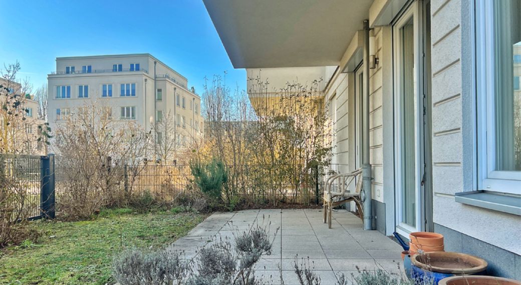 Diese stilvolle 3-Zimmer-Eigentumswohnung im Erdgeschoss einer modernen Stadtvilla von 2016 befindet sich im verkehrsberuhigten Quartier "Cedelia", das von den Villen Hilmer & Sattler und Albrecht geprägt ist. Die Wohnung besticht durch ihre Süd-Ost-Ausrichtung und eine großzügige Fläche von ca. 109 m², die ideal für Familien oder Paare ist. Der helle, offene Wohn- und Essbereich ist sonnendurchflutet und bietet direkten Zugang zur Terrasse sowie einem eigenen Gartenanteil von ca. 50 m², der viel Platz für Freizeit und Erholung bietet. Die hochwertige Ausstattung umfasst eine moderne Einbauküche mit Markengeräten von Neff und Miele, Echtholz-Eichenparkett in allen Wohnräumen sowie ein Gästebad mit großer Dusche und ein weiteres Bad mit Badewanne. Zudem gibt es eine praktische Kammer mit Anschlüssen für Waschmaschine und Wäschetrockner. Die Wohnung ist barrierefrei und bietet einen Tiefgaragenstellplatz, der bequem per Fahrstuhl erreicht werden kann. Die Lage zeichnet sich durch ihre Nähe zu öffentlichen Verkehrsmitteln, dem S-Bahnhof Sundgauer Straße und Einkaufsmöglichkeiten wie dem Edeka-Markt aus. Das Quartier bietet zudem zahlreiche Grünflächen und eine ruhige, familienfreundliche Atmosphäre. Das Gebäude wird mit Fernwärme beheizt, wodurch es sowohl umweltfreundlich als auch kostengünstig ist. Ideal für Familien, die modernes und komfortables Wohnen in einer ruhigen Umgebung suchen.